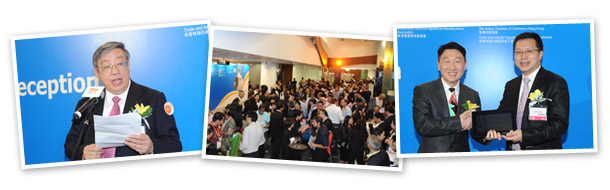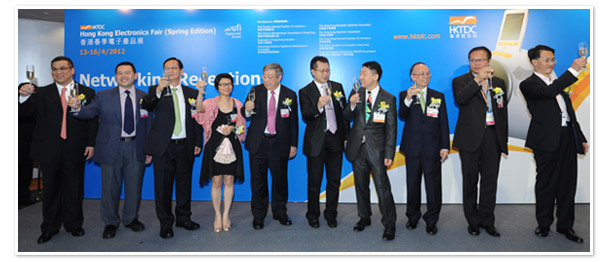 Guest of Honour Ir Dr the Hon Samson Tam Wai-ho, JP, Member of the Legislative Council (5th from right), Benjamin Chau, Deputy Executive Director, HKTDC (4th from right), Professor K B Chan, Chairman, HKTDC Electronics/Electrical Appliances Industries Advisory Committee (5th from left), and VIP guests toasting to the sucess of the fair.